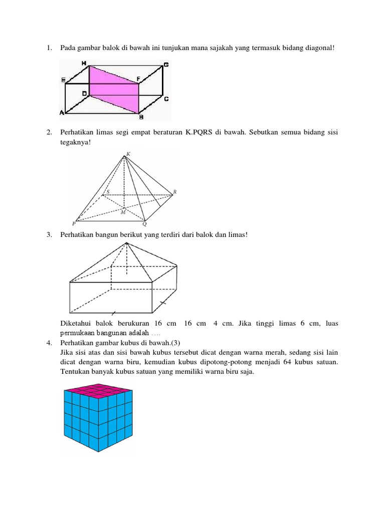 Tentukan bentuk bangun datar dari jaring jaring balok, jika diketahui balok abcd.efgh dipotong pada rusuk tertentu. Rebahkanlah balok yang telah digunting beberapa rusuknya. Perbesarlah gambar berikut ke dalam kertas karton. Perbedaannya hanya terletak pada bentuk sisi dari keduanya. √ edu passed pass quality & scientific checked by advisor, read our quality control guidelance for more. Berikut pembahasan jaring jaring balok beserta ukuran terlengkap sehingga sangat mudah untuk dipahami sekaligus di praktekkan dalam pembuatannya. Sehingga akan menghasilkan suatu jaringan balok. Agar lebih jelasnya, simak pembahasan soal berikut. Diterbitkan olehani subhan telah diubah 7 tahun yang lalu. Balok terbentuk dari tiga pasang sisi yang berbentuk persegi atau persegi panjang dengan satu diantaranya berukuran berbeda. Untuk lebih lengkapnyab sobat bisa melihat ulasannya sebagai berikut. Cara pemotongan yang sama apabila dimulai dari sisi yang berbeda akan menghasilkan bentuk yang berbeda pula. Bola merupakan bangun ruang yang dibatasi oleh sebuah sisi saja dan tidak memiliki rusuk.