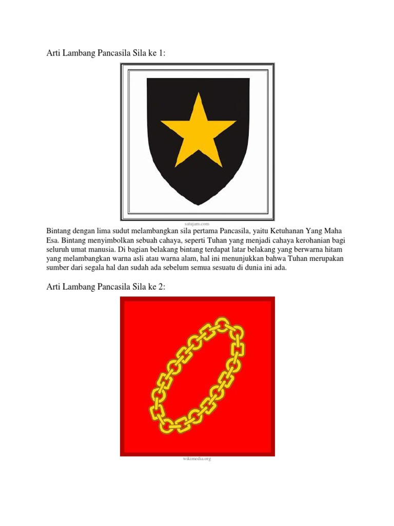 Arti lambang pancasila sila ke 1. Gambar bintang pada simbol pancasila sila pertama memiliki arti sebagai sebuah cahaya yaitu cahaya rohani yang dipancarkan oleh tuhan kepada umat manusia. Bintang menyimbolkan sebuah cahaya, seperti tuhan yang menjadi cahaya kerohanian bagi seluruh umat manusia. Sila kelima dari pancasila yaitu keadilan sosial bagi seluruh indonesia. Admin blog bagikan contoh 2019 juga mengumpulkan gambar gambar lainnya terkait contoh gambar pengamalan pancasila sila ke 1 sampai 5 dibawah ini. Sila pertama dalam pancasila adalah ketuhanan yang maha esa, berlambang bintang emas dengan lima sudut serta. Simbol pancasila sila yang pertama ialah digambarkan sebagai bintang yang memiliki lima sudut. Lambang ini representasi dari pangan dan sandang (pakaian) yang merupakan kebutuhan dasar manusia. Arti lambang pancasila sila ke 1 yang disimbolkan bintang emas adalah cahaya kerohanian seorang insan atau manusia yang berdasarkan kepada tuhan yang maha esa. Untuk lebih jelasnya berikut ini urutan lambang lambang pancasila dan artinya mulai sila ke 1 5 arti lambang pancasila sila ke 1. Gambar lambang pancasila dan artinya dari sila ke 1 sampai 5. Lambang sila pertama pancasila adalah bintang emas di atas perisai hitam. Gunkartagunawan kartapranata, public domain, via wikimedia commons makna lambang sila pertama pancasila sila pertama pancasila berbunyi, ketuhanan yang maha esa.
